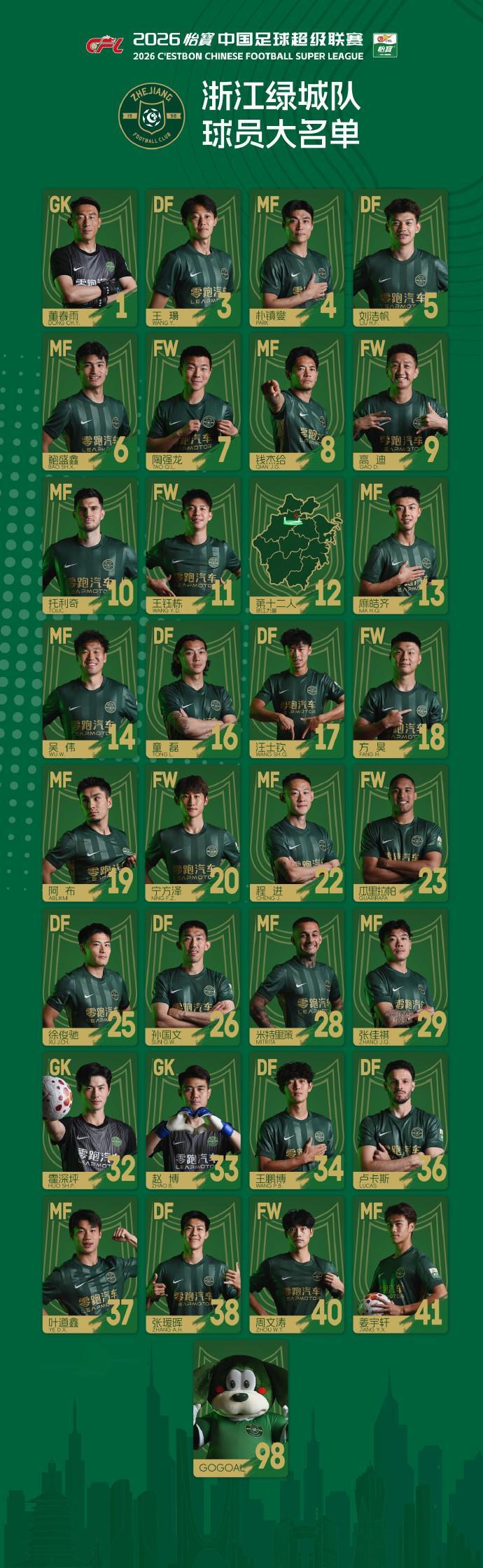 浙江队大名单